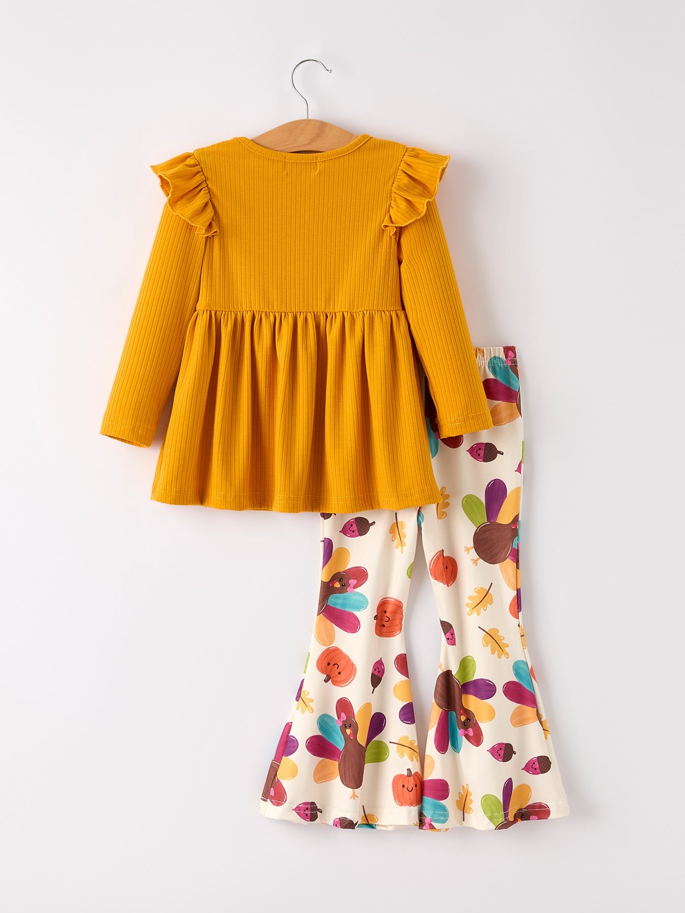 Celebrate the festive season in style with this Halloween Pumpkin Turkey Print Girls Long Sleeve Set. Featuring charming pumpkin and turkey designs, this cozy outfit keeps your little one comfortable and adorable during fall festivities. Perfect for Halloween parties or Thanksgiving gatherings, it combines playful prints with soft, breathable fabric for all-day wear. Make your child’s seasonal wardrobe both fun and functional with this delightful long sleeve set.