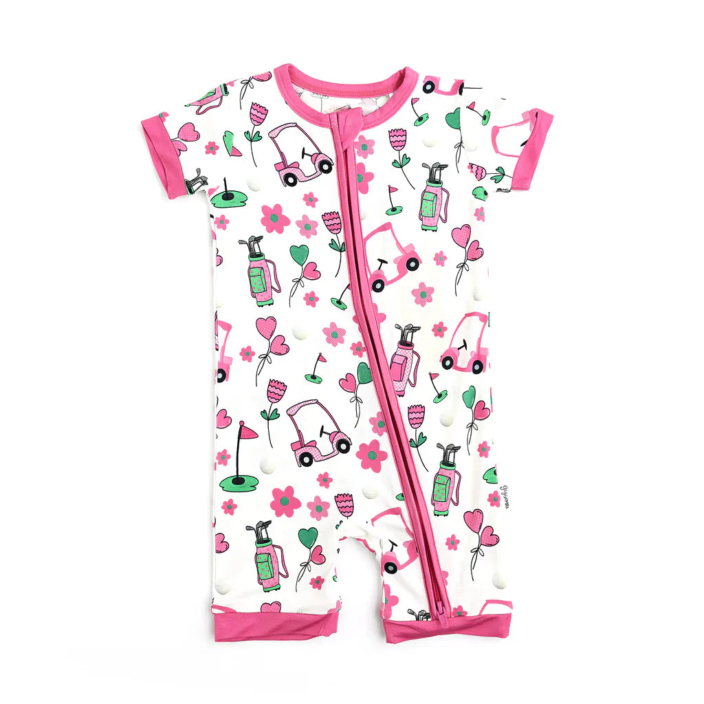 Gigi & Max: Lexi Pink Golf Bamboo Shortie Romper