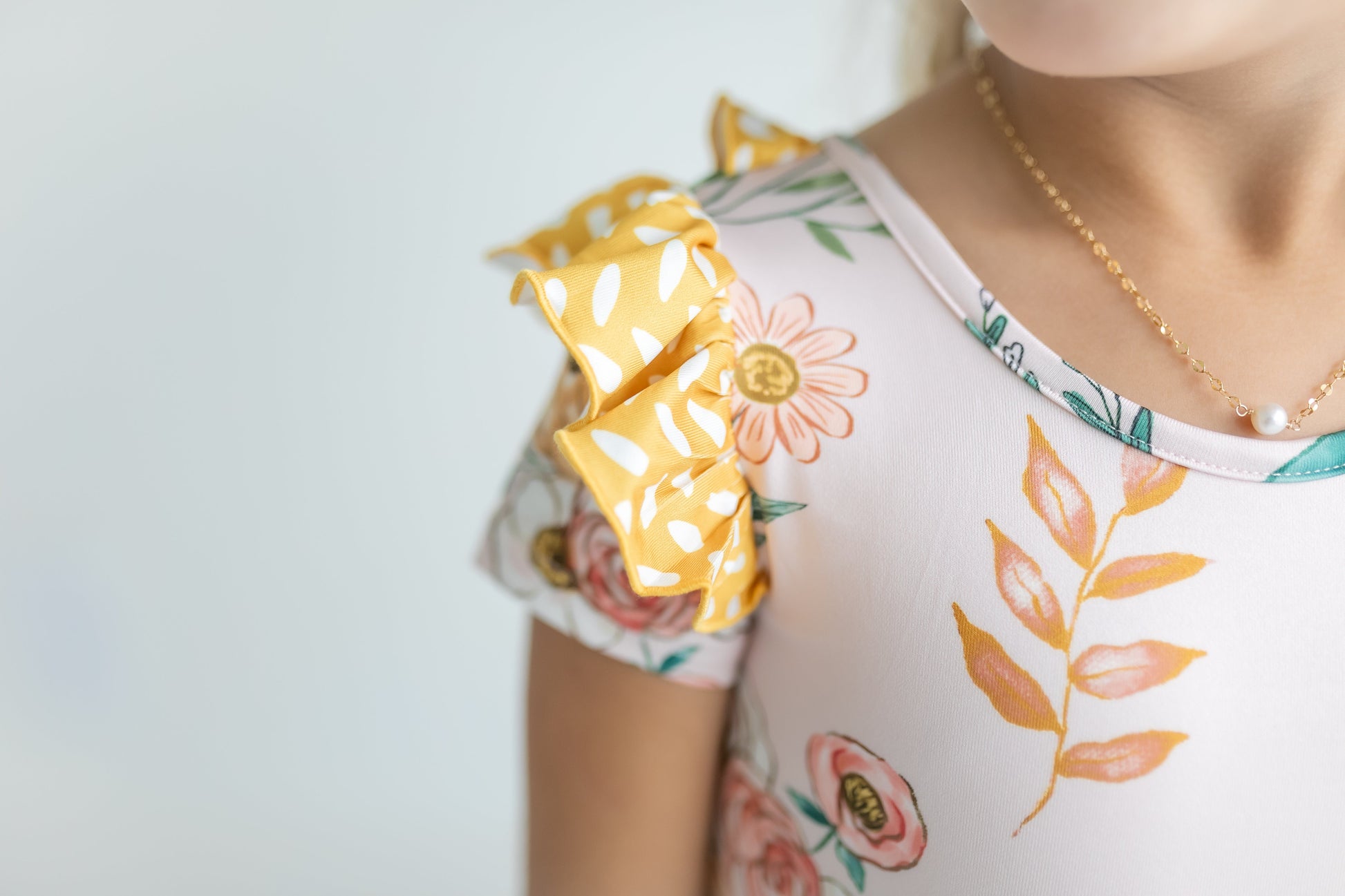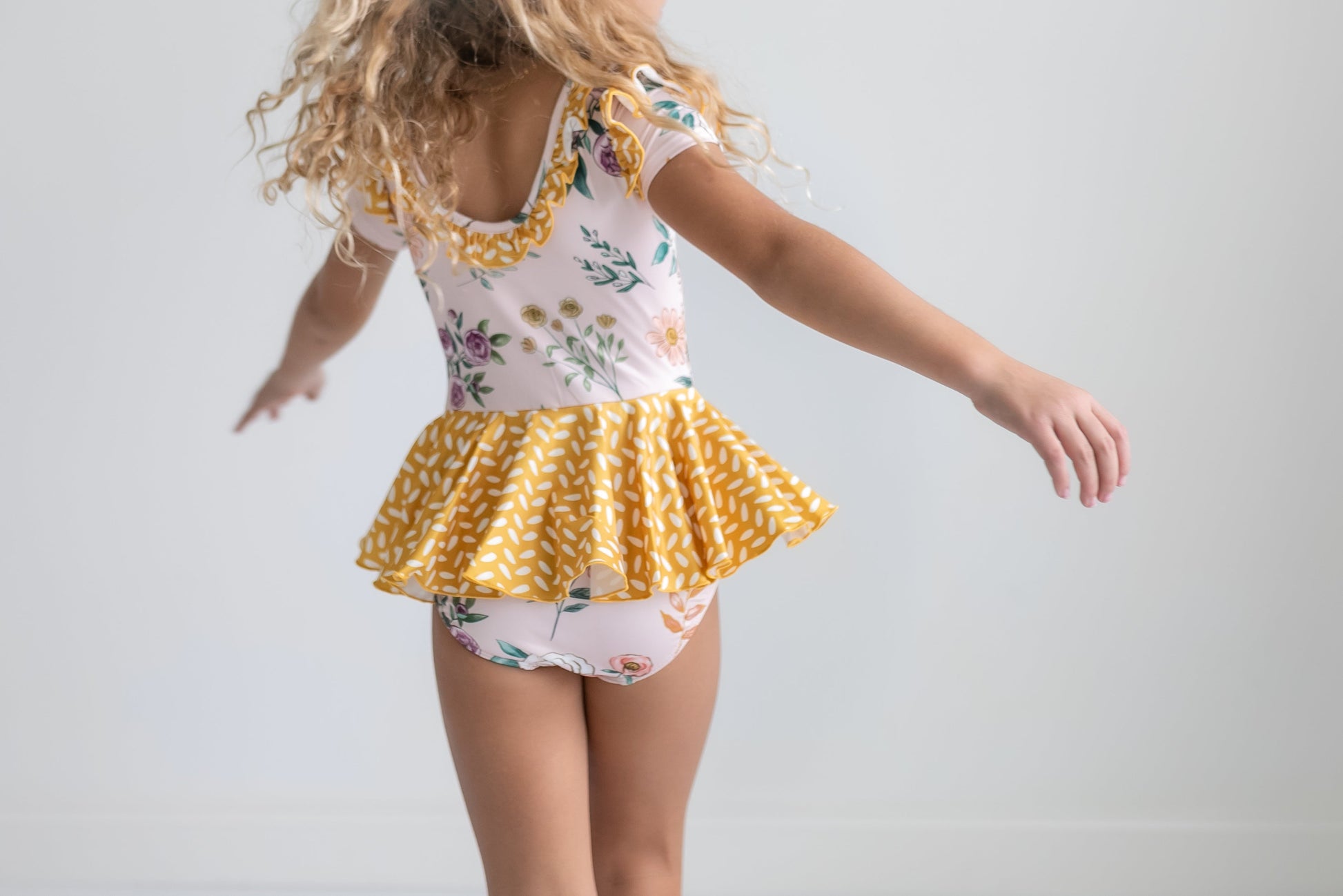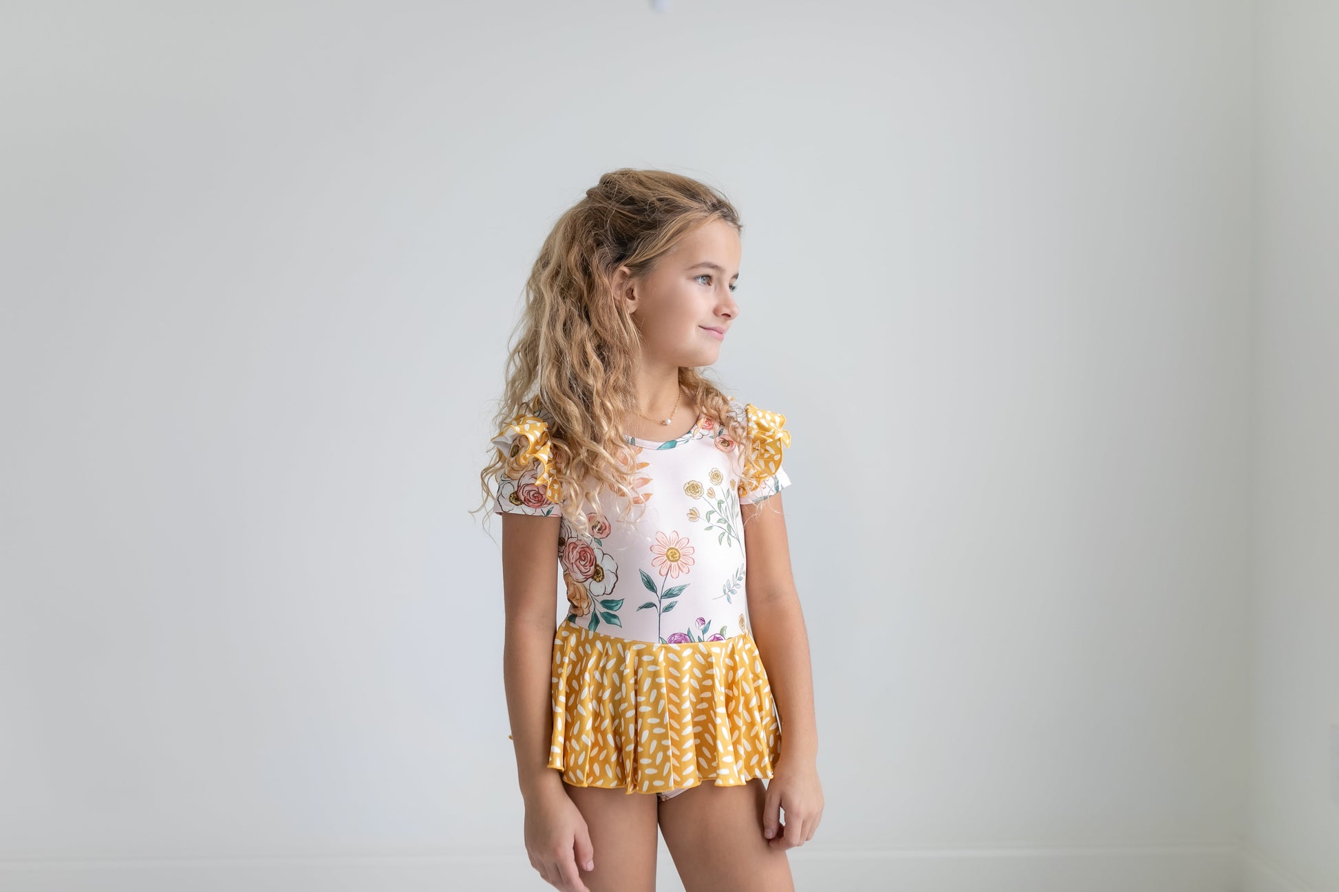 Mustard Dot Floral Skirted Leotard