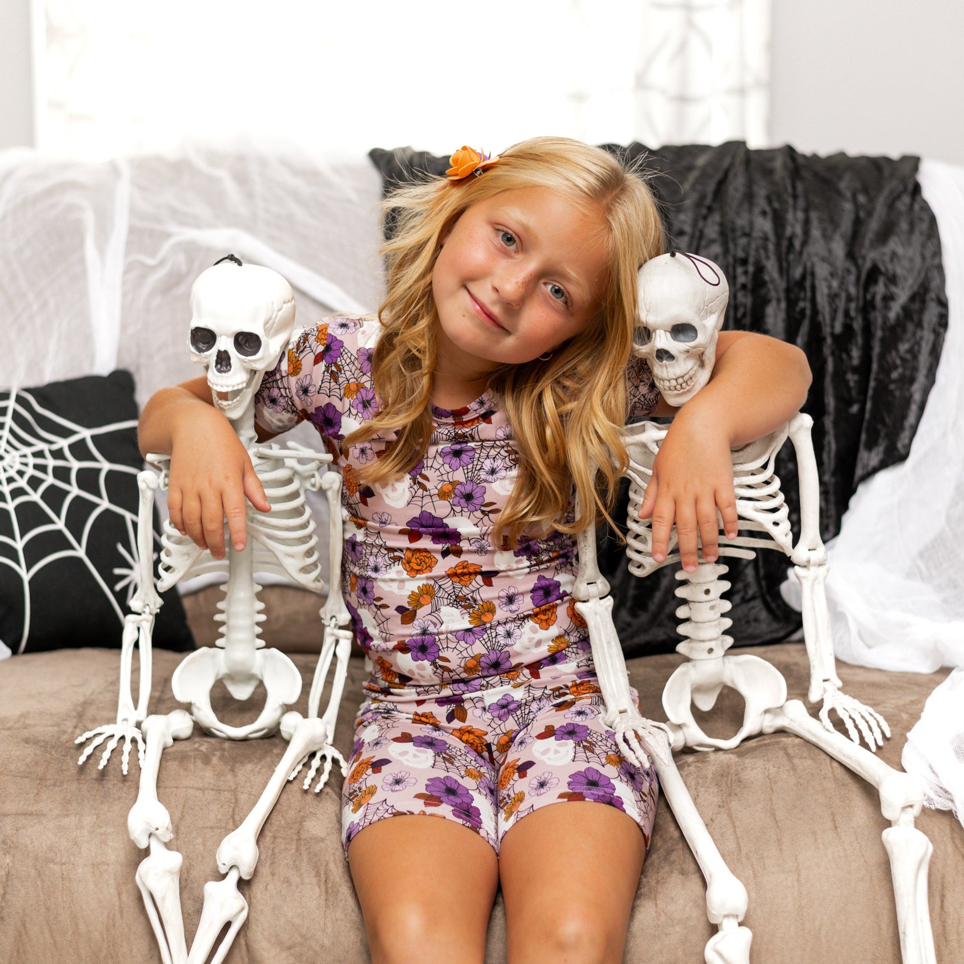 TWO PIECE SHORTIE SET- Lavender Skulls